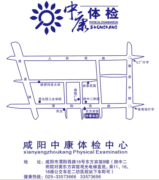 地址:渭阳西路16号(陕中二附院对面东方宾馆8楼) 邮编:712000 电话:029-33573666 400-66 传真: