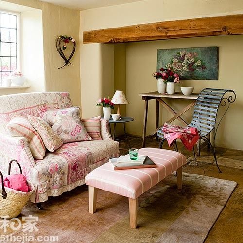 甜美的粉色碎花抵御了寒风的清晰,软包脚凳作为茶几迎合了这股甜美风,再加上一款户外椅迎合清新的田园风情。