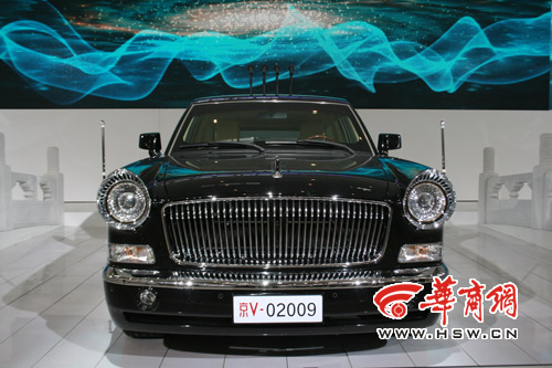 4月23日上午,记者在2010北京车展上拍到了去年建国60周年之际胡主席所乘坐的牌照号为京V 02009的红旗检阅车(CA7600J)。去年国庆过后无数汽车爱好者都对这款车表示了极大的兴趣,在本次车展中,红旗检阅车将充分满足观众的好奇心。