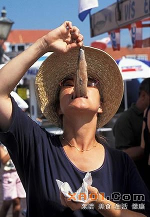 典型的荷兰佳肴之一就是生青鱼,一般是在春天的时候被捕上来的。如果你在合适的季节去荷兰,到处都会见到这种景象:荷兰人抓着青鱼的尾巴,让其慢慢地滑到嘴里。