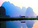 明仕田园的清晨是热闹的:小鸟在林间歌唱,周边的村民忙着把牛赶出来耕作,田间一片繁忙的景象。然而,即使繁忙,却并不嘈杂,远处的山峰静静地矗立在那儿,明仕河静静地流淌着,一切都显得那么安详、平静。突然有一种想歇下来的感觉,安安静静地看着河流上竹筏由远到近,由近到远,什么都不想,什么也不说,让时间永远停留在此刻。