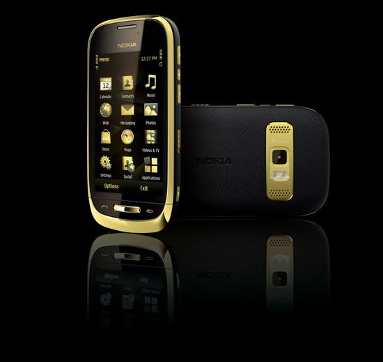 新浪科技讯 5月25日下午消息,诺基亚发布一款高端触摸屏智能手机——诺基亚Oro(参数 报价 论坛 软件)。这款定位奢华的使用Bridge of Weir皮革公司提供的小牛皮后盖、18k镀金和蓝宝石材质主屏幕键,并且是限量版产品。