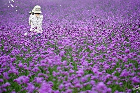 寻梦园的小层,连墙壁都是紫色的。白色的围栏也装饰成了五线谱,一切都是在营造着浪漫。 薰衣草的个头不高,而且是很深的紫色,感觉不是太好看,真正好看是的照片上远处的柳叶马鞭草,马鞭草的紫色很鲜艳,而且个头也高。大片大片的马鞭草看着很壮观,也很漂亮。