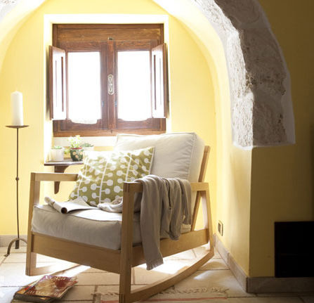 木色和白色的搭配看上去很纯净,在窗口布置这样一个安静的休息区,立刻为你营造出一处可以休闲阅读的角落,而柔和的色彩和空间感也让人倍感舒适惬意。