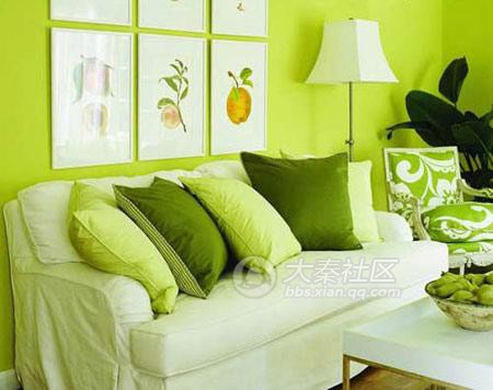 奇异果色彩一样的墙面,使得空间空间环境显得简单而又清凉。草绿色的沙发则为空间增加了,木质感书架让空间变得更加温暖。大朵的印花装饰品让居室增添一抹缤纷色彩,提升了空间的整体色感。(论坛)