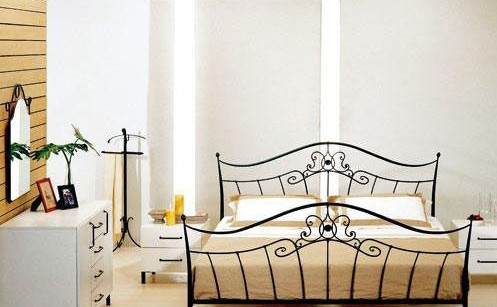 白色的铁艺床拥有优美的曲线,采用对称设计,搭配柔和的米色纯棉床品,使得整个床款优雅而舒适,适合搭配白色的新古典木质床头柜和白色的落地灯。